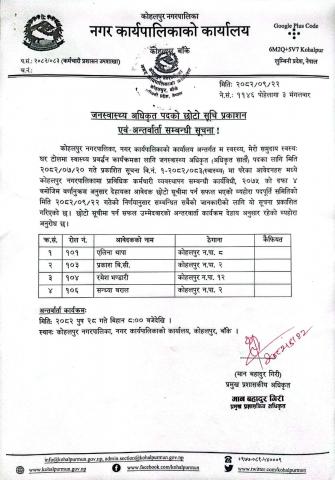 जनस्वास्थ्य अधिकृत पदको छोटो सुची प्रकाशन एवं अन्तर्वार्ता सम्बन्धी सूचना!!! (प्रकाशित २०८२/०९/२२)