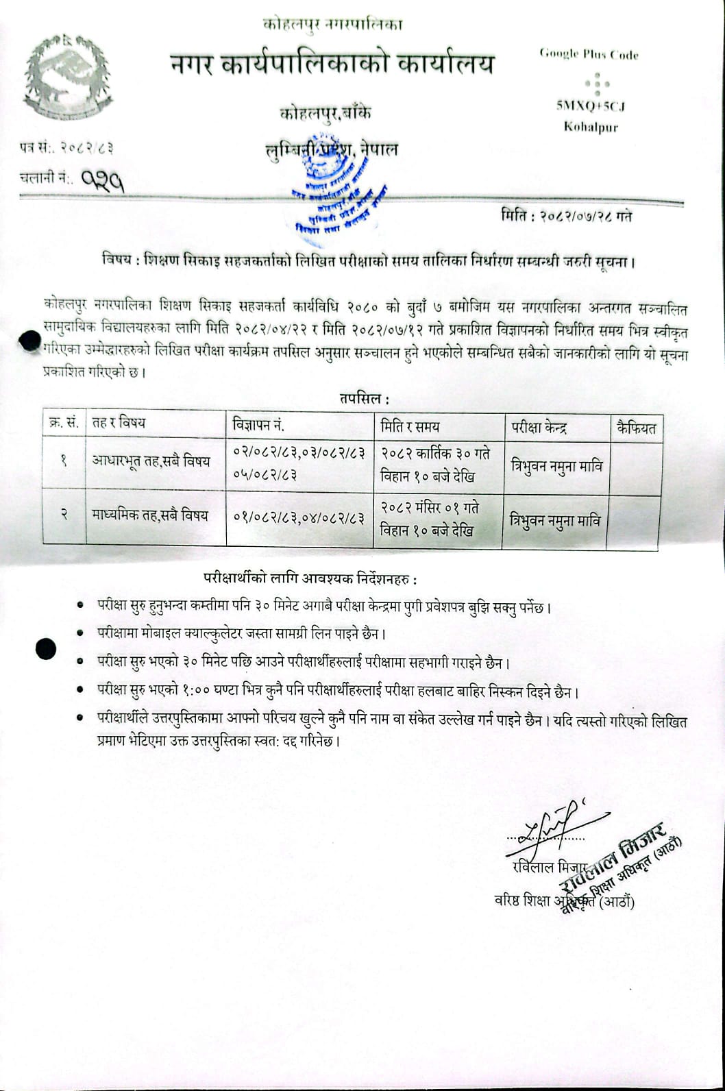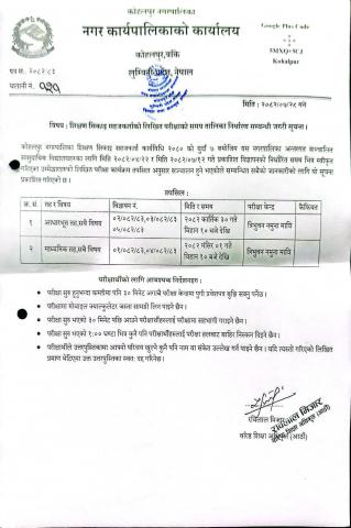 शिक्षण सिकाई सहजकर्ताको लिखित परीक्षाको समय तालिका निर्धारण सम्बन्धी जरुरी सूचना!!! (प्रकाशित २०८२/०७/२८)