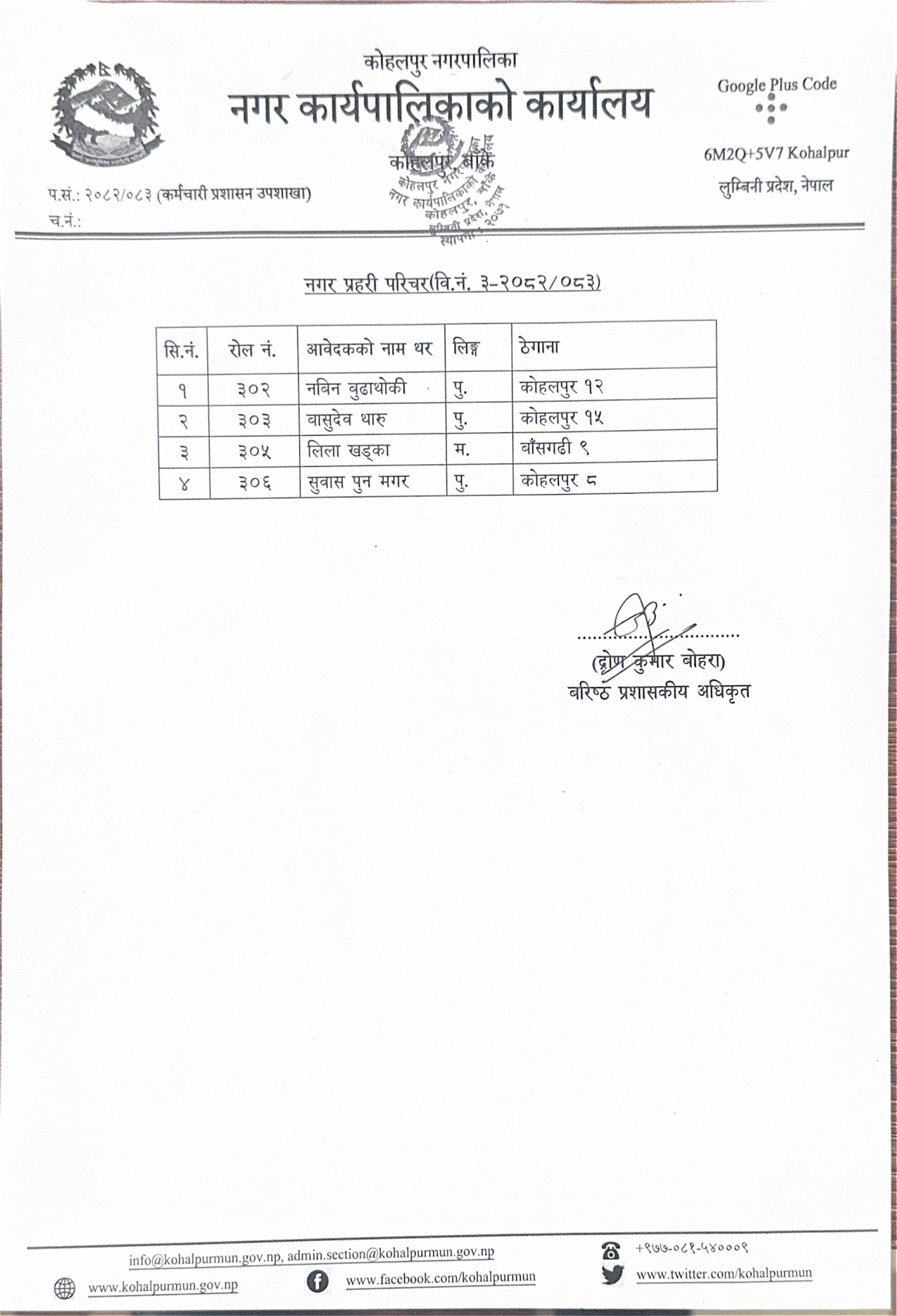 विस्तृत स्वास्थ्य परिक्षणको नतिजा प्रकाशन सम्बन्धी सूचना!!! (प्रकाशित २०८२/१२/३०)