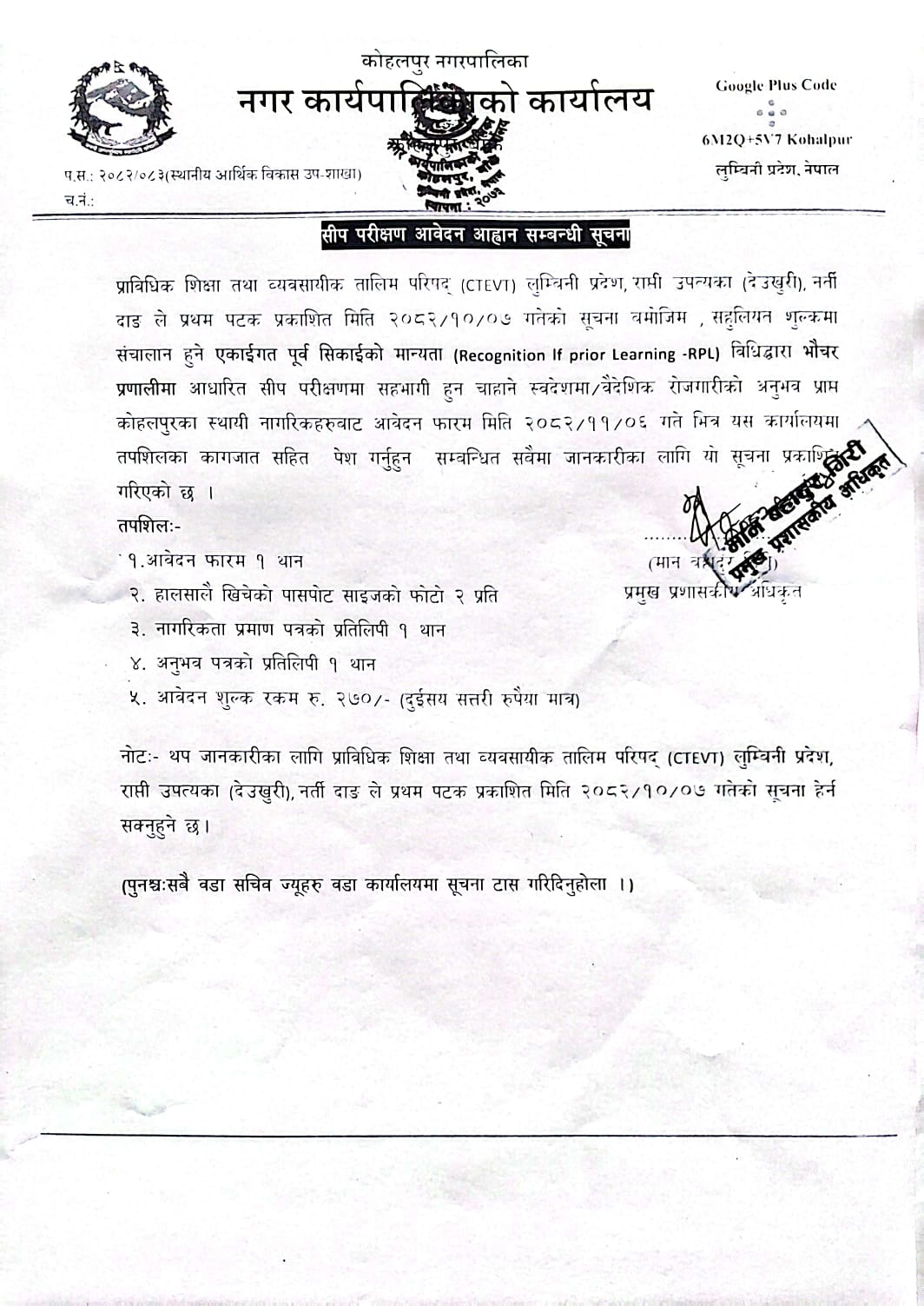 सिप परीक्षण आवेदन आह्वान सम्बन्धी सूचना!!!