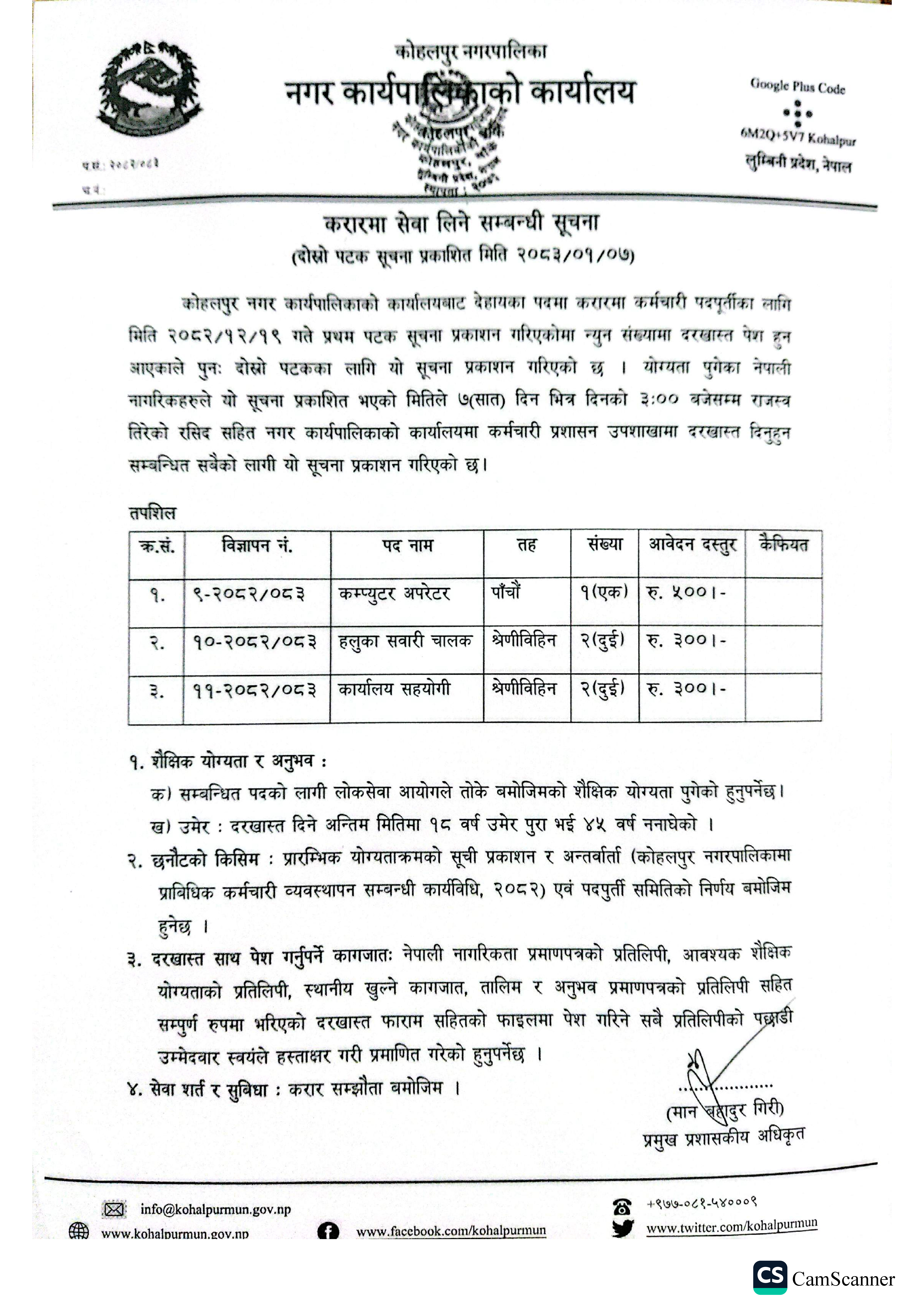 करारमा सेवा लिने सम्बन्धी सूचना!!! (प्रकाशित २०८३/०१/०७)