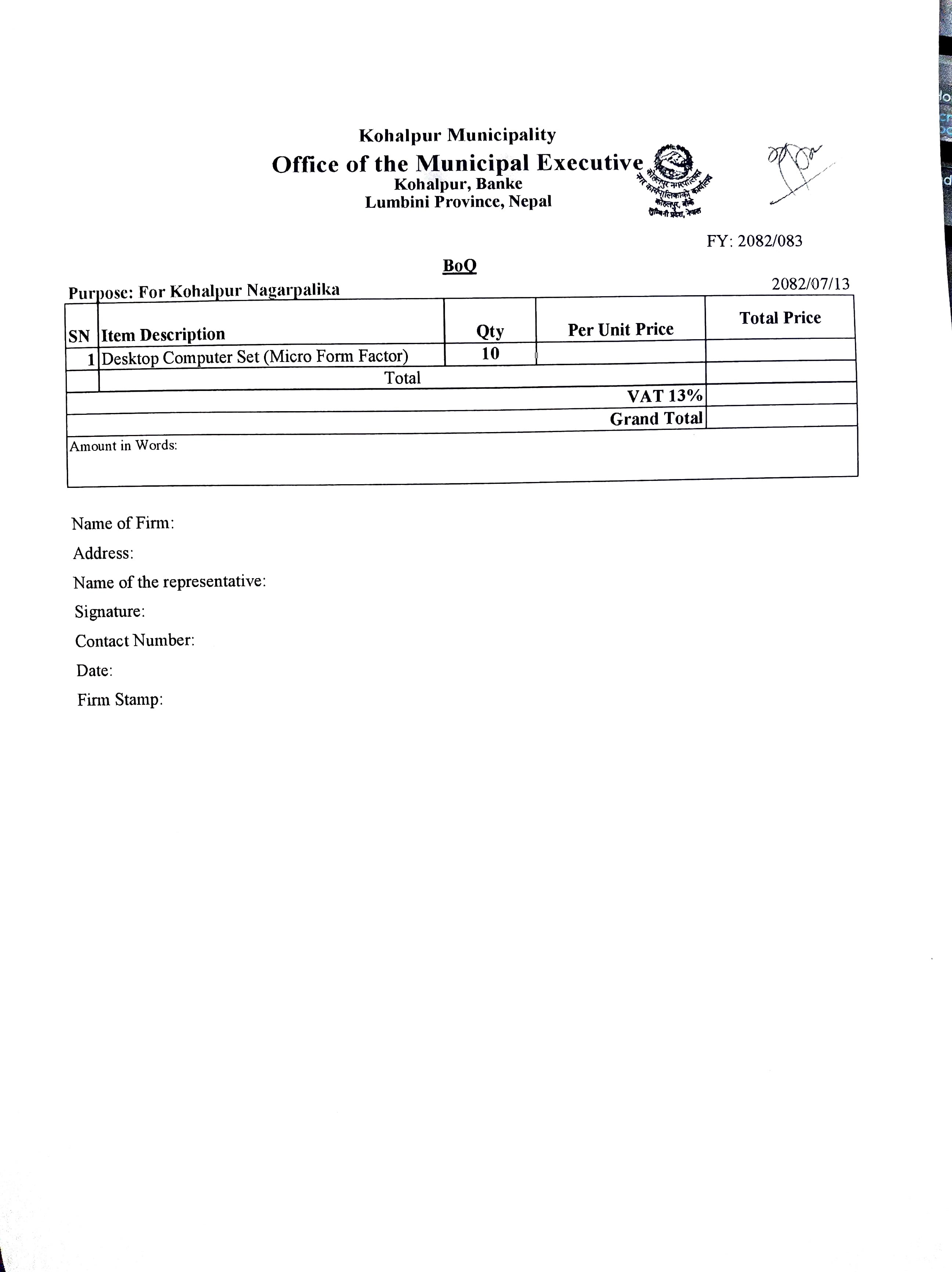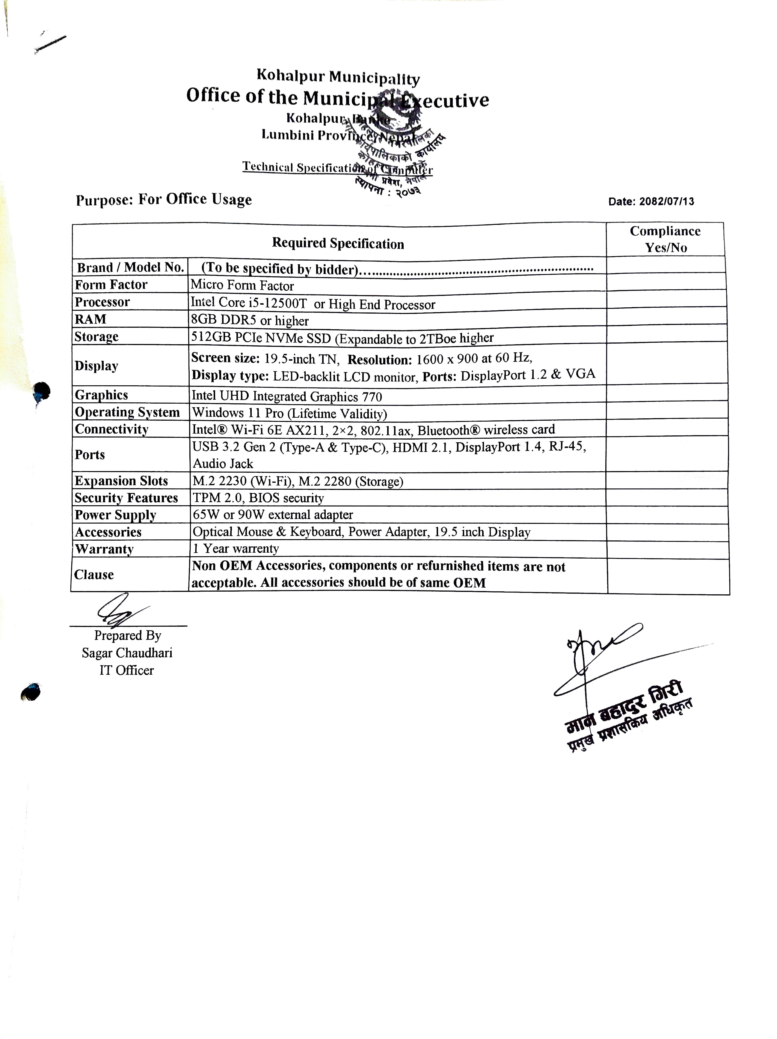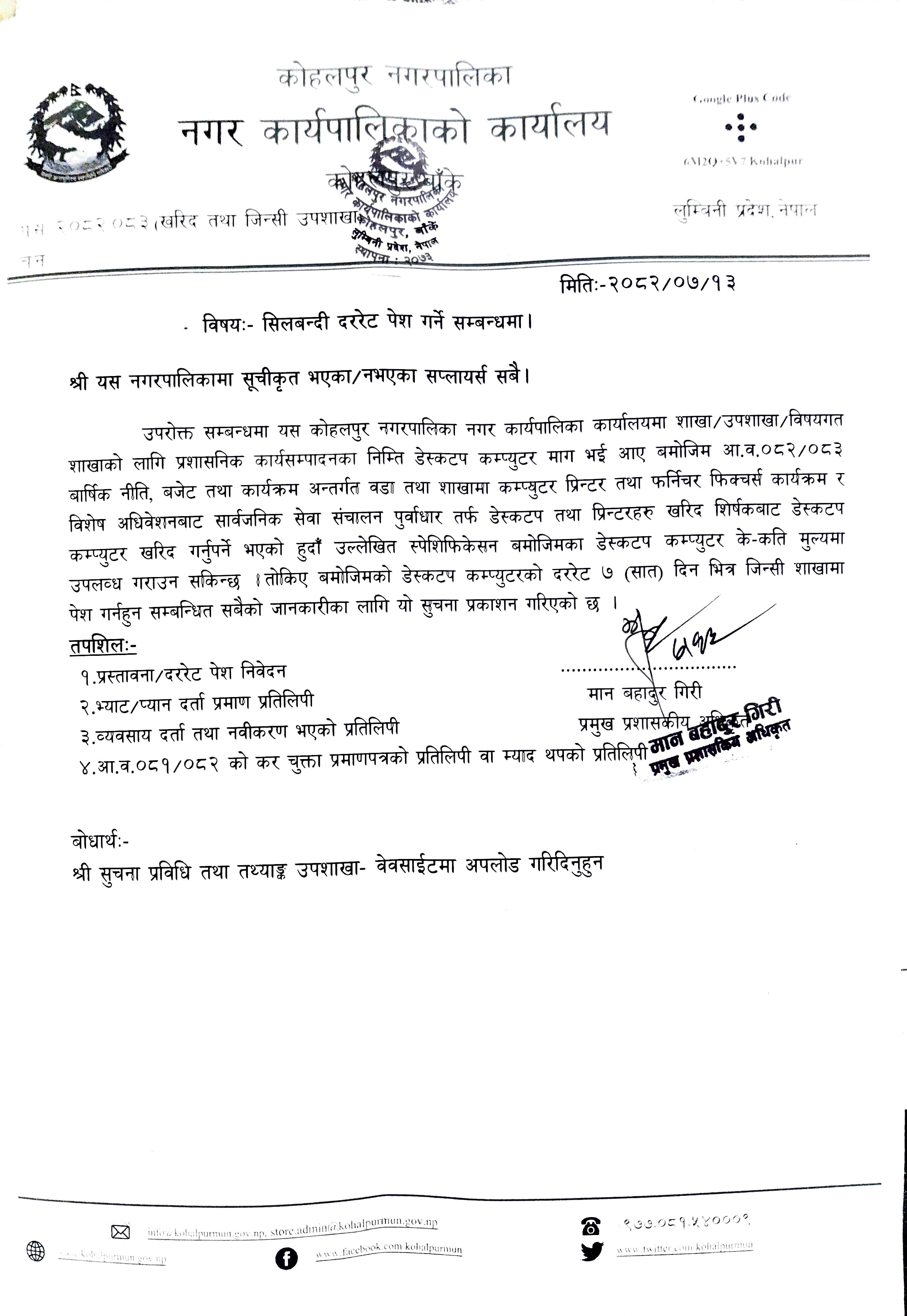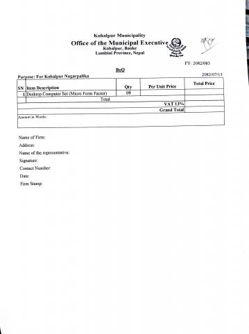डेस्कटप कम्प्युटरको सिलबन्दी दररेट पेश गर्ने सम्बन्धि ७ दिने सूचना!!! (प्रकाशित २०८२/०७/१३)