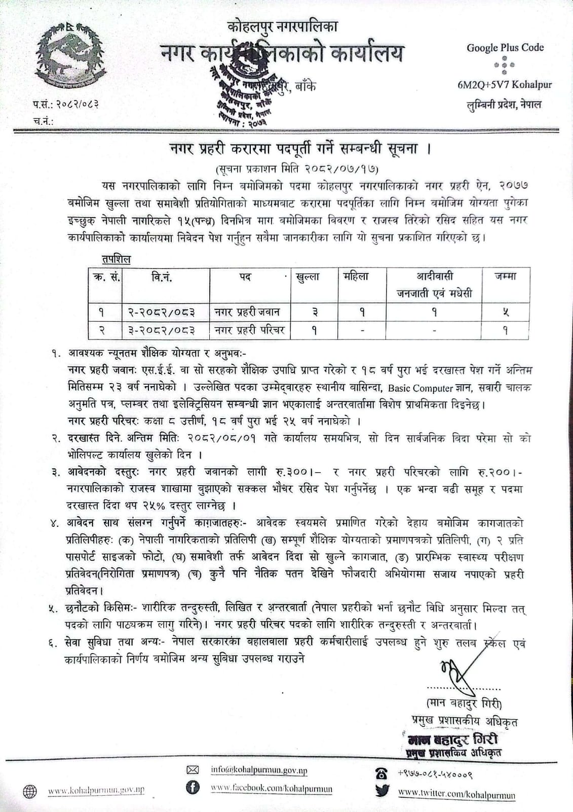 नगर प्रहरी करारमा पदपूर्ति गर्ने सम्बन्धी १५ दिने सूचना!!! (प्रकाशित २०८२/०७/१७)