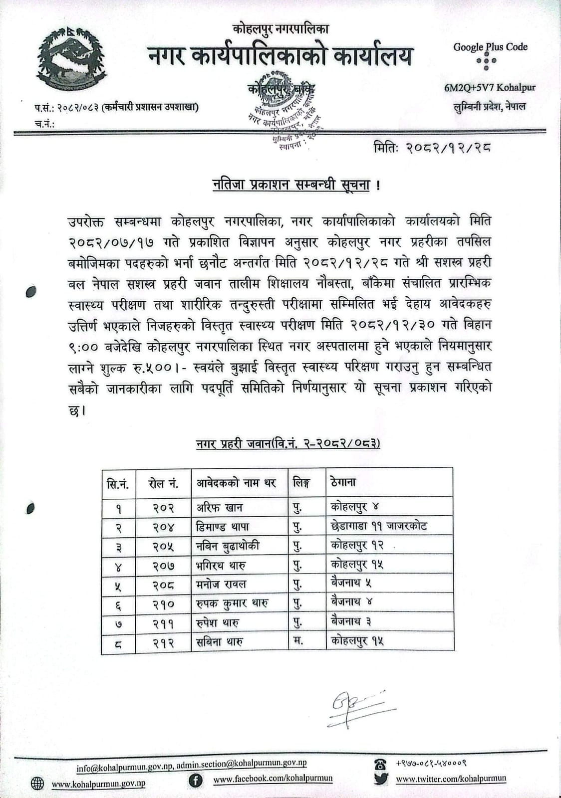 नतिजा प्रकाशन सम्बन्धी सूचना!!! (प्रकाशित २०८२/१२/२८)