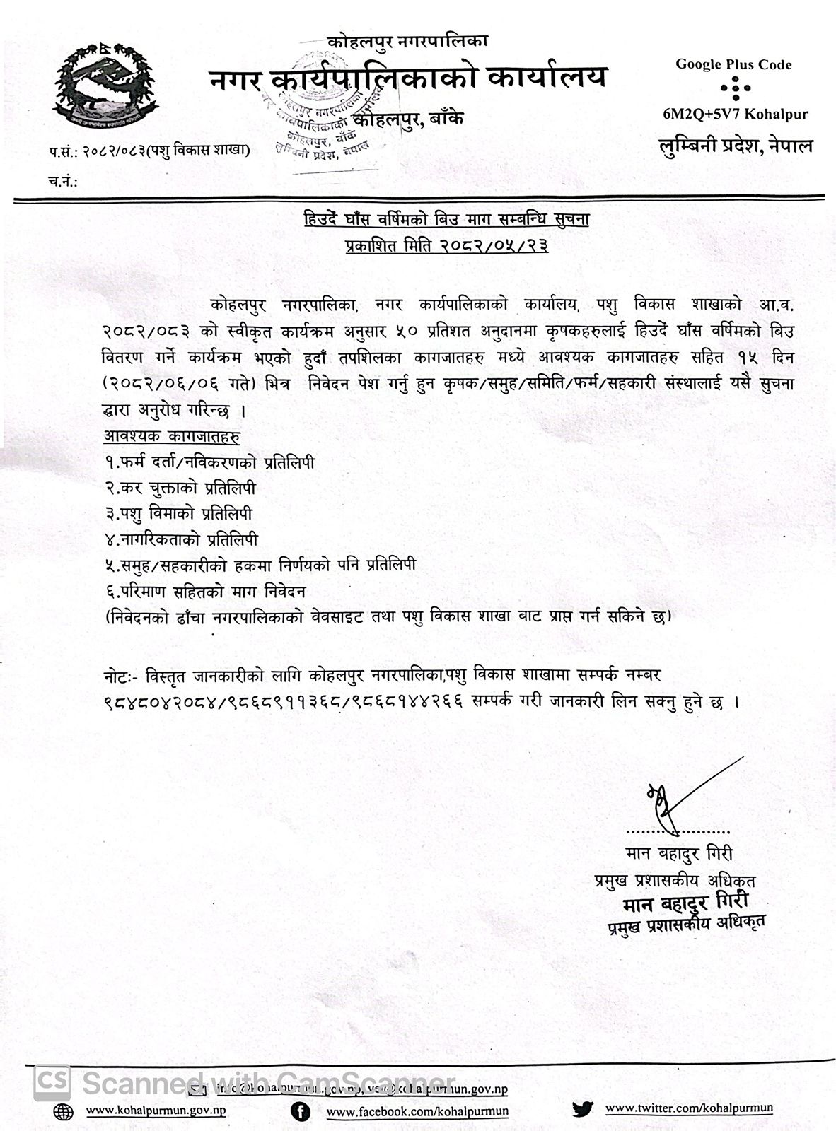 हिउँदे घाँस वर्षीमको बिउ माग सम्बन्धी १५ दिने सूचना!!! (प्रकाशित २०८२/०५/२३)